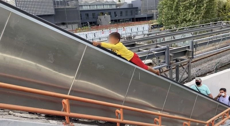 Zeytinburnu Tramvay İstasyonu girişindeki yürüyen merdivenleri eğlence amaçlı kullanan küçük çocuğun tehlikeli oyunu cep telefonu kamerasına yansıdı.