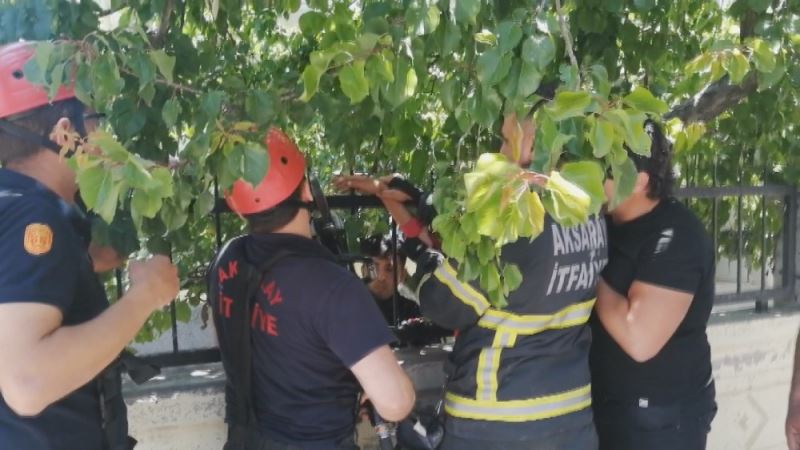 Olay, Fatih Mahallesi 4107 Sokak’ta bulunan bir apartmanın bahçe duvarında meydana geldi. Edinilen bilgiye göre, oyun oynamak için sokağa çıkan Ş.S. (9) isimli kız çocuğu, arkadaşlarıyla oyun oynarken bahçe duvarının üzerinde bulunan korkuluk demirlerine tutunarak duvar üzerine çıktı. Bu sırada dengesini kaybeden çocuk düşmemek için korkuluk demirini tutmak isterken eli korkuluk demirine saplandı. Çocuğun acılar içinde ağlaması üzerine olayı fark eden çevredeki vatandaşlar durumu 112 Acil Çağrı Merkezine bildirdi. İhbar üzerine olay yerine itfaiye ve sağlık ekibi sevk edildi. Kısa sürede olay yerine gelen Aksaray Belediyesi İtfaiye Müdürlüğü ekipleri acılar içinde kıvranan çocuğa müdahale etti. Çocuğun elinin saplandığı demir parçası kesilerek çocuk elindeki demirle olay yerinde bulunan ambulansla Aksaray Üniversitesi Eğitim ve Araştırma Hastanesi Acil Servisine kaldırıldı. Çocuk burada tedavi altına alınırken, itfaiye ekipleri burada da sağlıkçılara yardımcı olarak çocuğun elindeki demiri çıkarttı. Tedavi altına alınan çocuğun durumunun iyi olduğu öğrenildi.