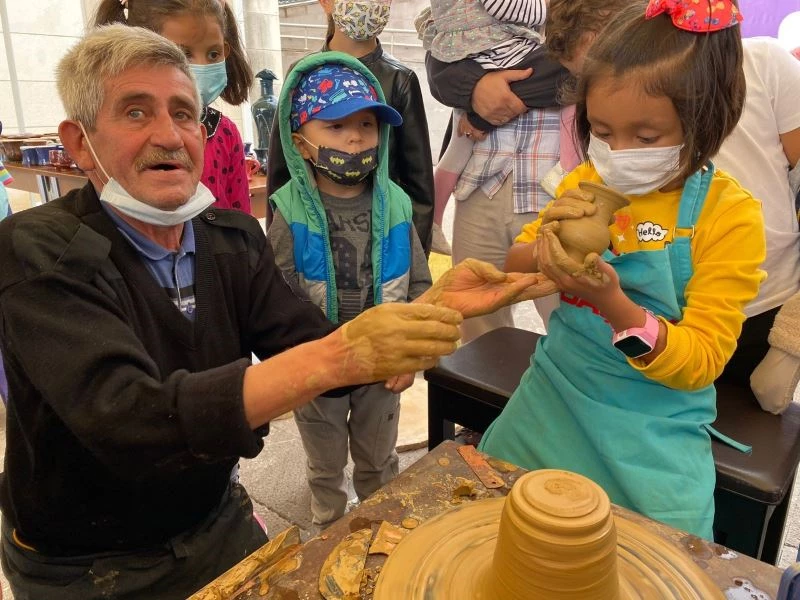 Geçtiğimiz hafta Yaşayan Şehir Müzesinde tişört boyama etkinliğine katılan ve zumba yapan çocuklar, bu hafta çömlekçi ustasından çömlek yapımını öğrenerek, çamura dokunma fırsatı buldu. Yaptıkları çömleklerle fotoğraf çektiren çocuklar daha sonra müzik eşliğinde dans gösterileri yaptı.