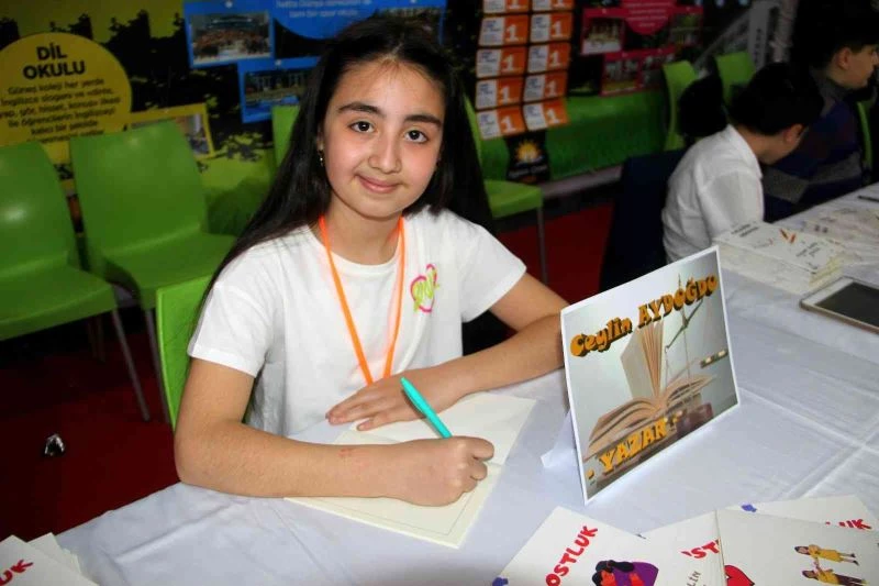 Erzurum’da düzenlenen Doğu Anadolu Erzurum Kitap Fuarında ‘Dostum’ adlı kitabını imzalayan 11 yaşındaki Esila Ceylin Aydoğdu, fuarın ilgi odağı oldu.