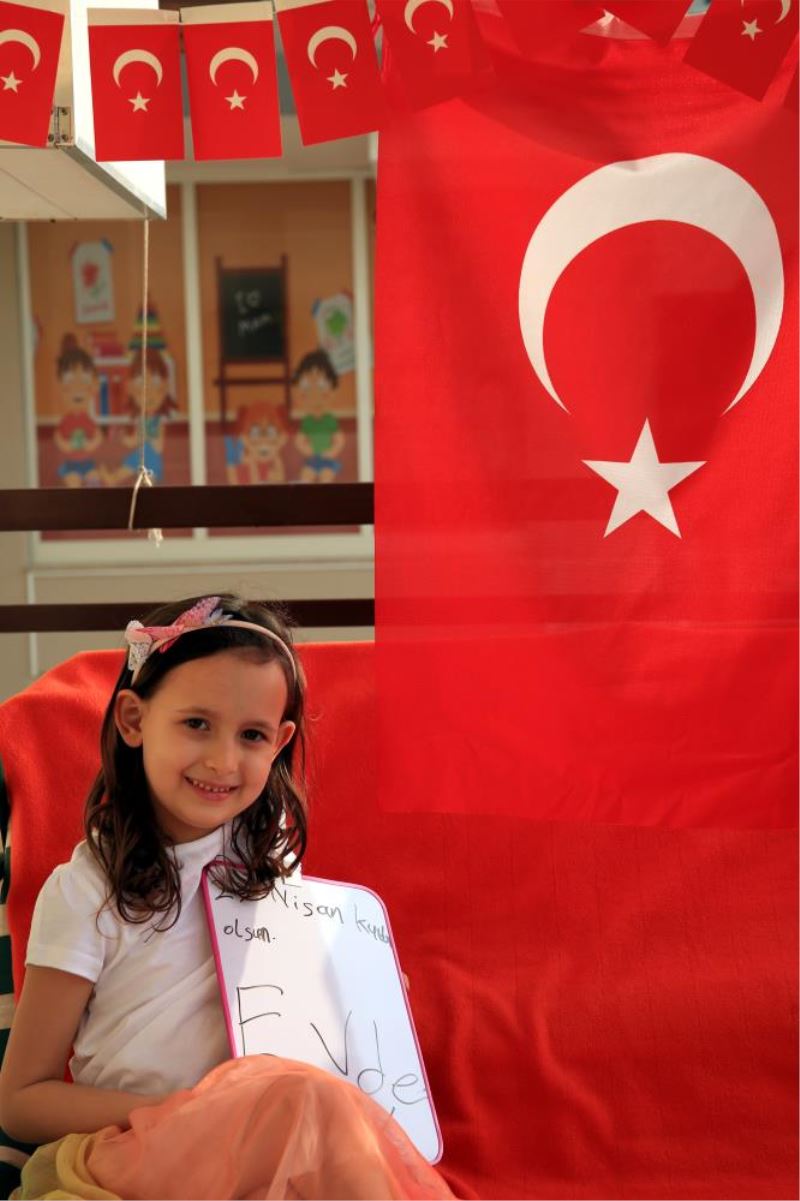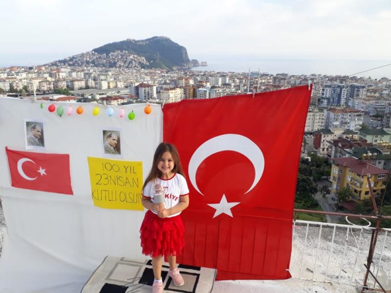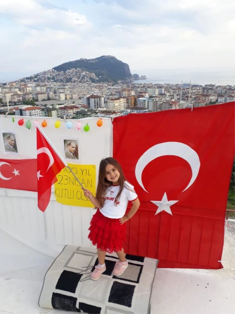 Konyaalti ilçesinde yasayan 7 yasindaki Azra Özden de yazilarla "Evde Kal" mesaji verdigi balkonunu balonlar ve Türk bayraklariyla süsleyerek 23 Nisan'i kutladi.