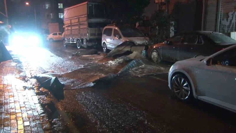 Küçükçekmece’de çatı kaplaması uçtu, 2 araç hasar aldı