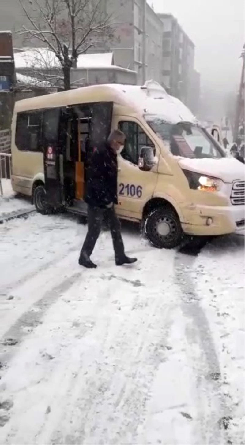Küçükçekmece’de kar yağışı nedeniyle araçlar yolda kaldı, yolcu minibüsü kaydı.