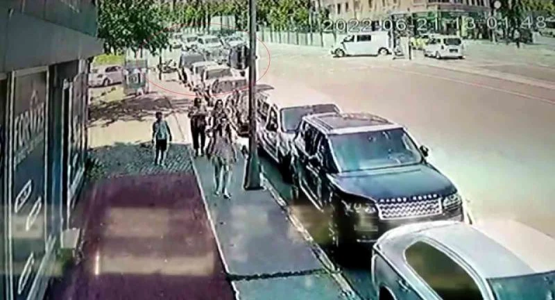 Kaza anı ise çevrede bulunan bir iş yerine ait güvenlik kamerasına saniye saniye kaydedildi. Görüntülerde kavşakta motosiklet sürücüsünün ters yöne geçtiği sırada karşı yönden hızla gelen ve kavşakta diğer araçların beklemesine rağmen yoluna devam eden sürücüsünü motosikletliye çarptığı görülüyor. Motosiklet sürücüsünün savrulma anı güvenlik kamerası görüntülerini yansıyor.