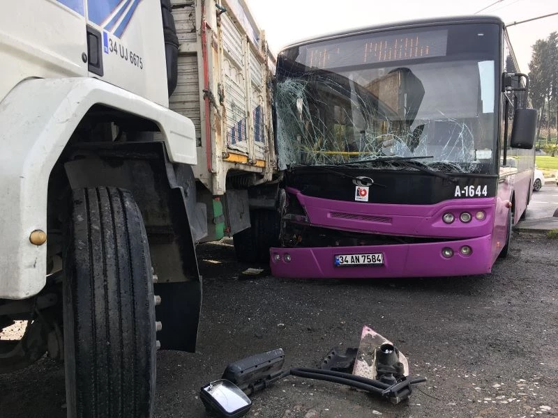 Küçükçekmece’de hızını alamayan yolcu otobüsü, manevra yapan hafriyat kamyonuyla çarpıştı.
