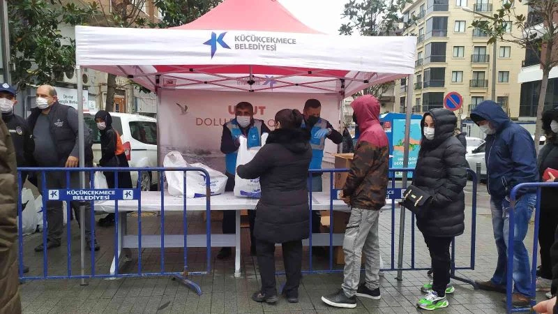 Yılbaşı gecesini evlerinde geçirmek isteyen vatandaşlar için Küçükçekmece Belediyesi, ücretsiz olarak 3 bin 500 gıda paketi dağıttı. Cips, kuruyemiş, kola ve yumurta olan paketleri almak için sıraya giren vatandaşlar stantın önünde uzun kuyruklar oluşturdu.