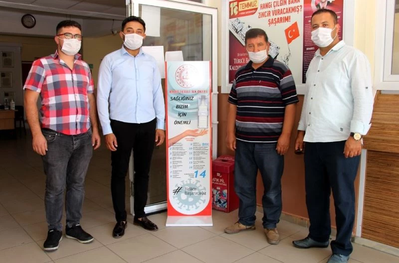 Kula İYİ Parti İlçe Başkanlığı, Covid-19 tedbirleri kapsamında bir okula dezenfektan standı hediye ederek sosyal sorumluluk projesi başlattı.