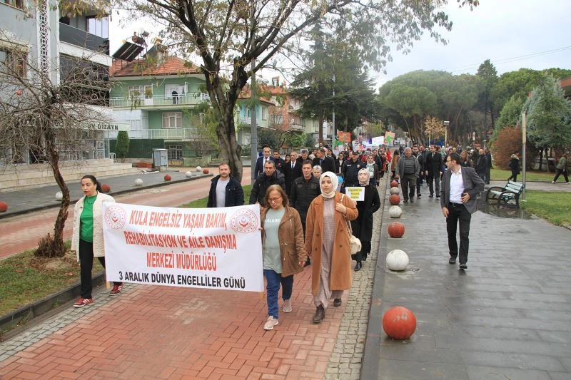 Kula 80.Yıl Engelsiz Yaşam Bakım ve Rehabilitasyon Merkezi tarafından, 3 Aralık Dünya Engelliler Günü dolayısıyla düzenlediği program, Kent Meydanı’nda bulunan Atatürk Abidesine çelenk sunulması ile başladı. Kurumun çelenginin sunulmasının ardından engelli öğrenciler ve protokol üyeleri, rengarenk balonları gökyüzüne bırakarak farkındalık oluşturdu. Ardından Kula Yaren Ekibi’nin de katıldığı programda protokol üyeleri ve engelli öğrenciler yaren ekibi eşliğinde kortej yürüyüşü düzenleyerek engelliler gününe dikkat çekti. Salon programı ise Kültür Merkezi’nde düzenlendi. İstiklal Marşı’nın okunmasıyla başlayan programda günün anlam ve önemini belirten konuşmayı Kula 80.Yıl Engelsiz Yaşam Bakım ve Rehabilitasyon Merkezi Müdürü Mehmet Artaç yaptı. Konuşmanın ardından engelli öğrenciler ve kurum personelleri tarafından hazırlanan halk oyunları gösterileri, parodi dans gösterisi, semazen gösterisi, şiirlerin okunması, koro gösterisi ve eşofmanlı Şevket hoca gösterileri sergilendi. Büyük çoğunluğu engelli öğrenciler tarafından hazırlanan program, katılımcılar tarafından büyük beğeni topladı.