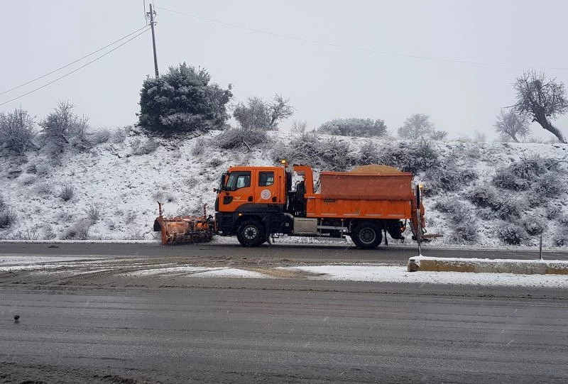 Manisa’nın Kula ilçesinde karayolları ekipleri, sabah başlayan kar yağışı nedeniyle ulaşımda aksama olmaması için tuzlama ve küreme çalışması yaptı.