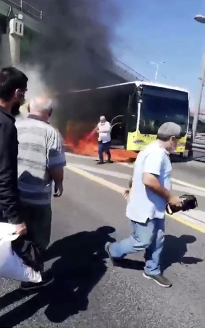 Bakırköy’de çıkan yangında küle dönen metrobüsten şoförün son anda kurtulduğu ortaya çıktı. Elinde yangın tüpü ile yangına müdahale etmeye çalışan şoför vatandaşlar tarafından olay yerinden uzaklaştırıldı.