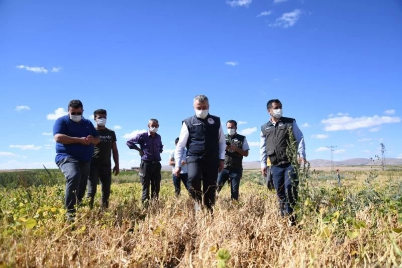 Kayseri Tarım ve Orman İl Müdürü Mustafa Şahin, Bitkisel Üretim ve Bitki Sağlığı Şube Müdürü Mehmet Demirbaş ve Talas İlçe Müdürü Murat Ürker ile birlikte Talas İlçesi Alaybeyli Mahallesinde 75 dekarlık alanda bakanlık tarafından yüzde 75’ i hibe edilerek dağıtımı yapılan kuru fasulye tohumu yetiştiren çiftçinin hasadına katıldı.