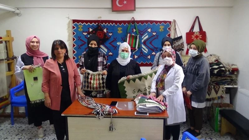 Sason’da Çok Amaçlı Toplum Merkezinde (ÇATOM) açılan halı dokuma kursunda bir araya gelen kadınlar, evde kullanılmayan kazak, eşarp, şal, yatak örtüsü ve benzeri ürünleri keserek şeritler halinde elde ettikleri orlon ve iplerle atölyede birbirinden güzel dokuma ürünleri elde ediyor. Kadınlar bu vesile ile hem kızlarının çeyizlerini tamamlıyor hem de yaptıkları ürünleri satarak aile bütçelerine katkı sağlıyorlar.