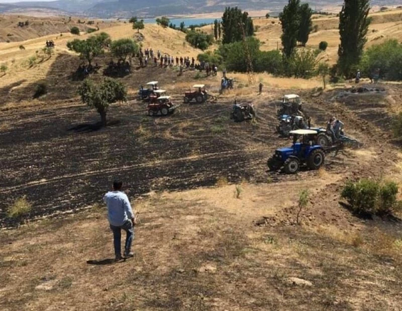 Diyarbakır’ın Kulp ilçesinde elektrik direklerinde çıkan kıvılcımlardan dolayı 83 dönümlük buğday ekili arazi küle döndü.