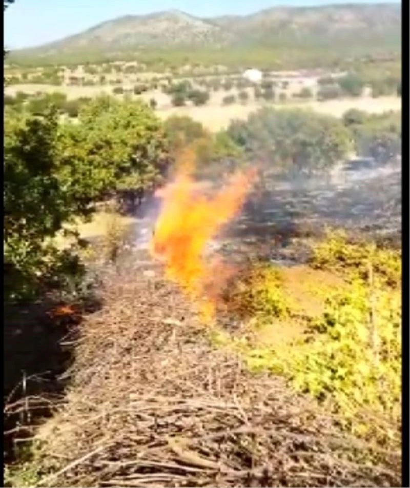 Diyarbakır’ın Kulp ilçesinde çıkan yangında, 4 dönüm bağ alanı zarar gördü.