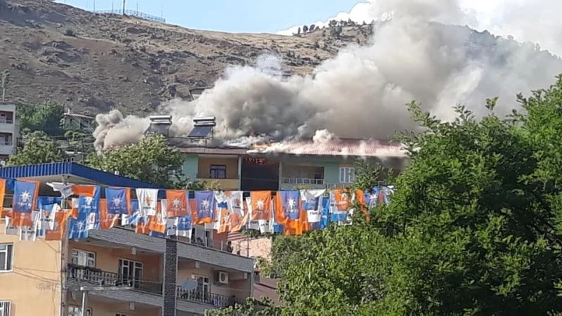 Diyarbakır’ın Kulp ilçesinde bir binanın çatısında çıkan yangın paniğe neden oldu.