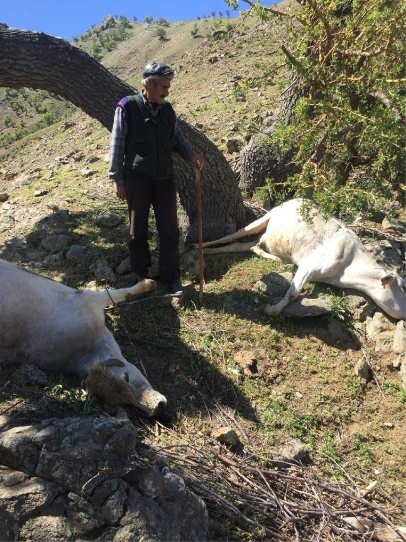 Kulp ilçesi Ağaçkorur Mahallesi’ne bağlı Panak Kümeevleri mevkiinde ikamet eden Müzeydin Torun isimli besici hayvanlarını otlatmaya çıkardı. Hayvanlar mera alanlarında otlarken aniden bastıran yağış ile birlikte hayvanların üzerine yıldırım isabet etti. Yıldırım düşmesi sonucu 6 büyükbaş hayvan telef oldu. Geçimlerini hayvancılıkla sağlamaya çalışan Müzeydin Torun, ”Ben 11 nüfuslu bir aileyim, aynı zamanda eşim hasta ve yatalak. Kaldığımız yerleşim yerimiz dağlık bir yapıya sahip olduğu için tarım alanlarımız çok kısıtlıdır, biz de hayvancılık yaparak geçimimizi sağlamaya çalışıyoruz. Bana ait hayvanları evimizin ilerisinde bulunan mera alanlarımızda otlatıyordum. Aniden bastıran yağmurla birlikte hayvanların üzerine yıldırım isabet etti. Tek geçim kaynağımız olan 6 büyükbaş hayvanımın telef olmasına neden oldu. Hayvanlarımın telef olmasıyla birlikte ne yapacağımızı da şaşırdık, yetkililerden ve hayırseverden bizlere yardım etmelerini istiyorum” dedi.