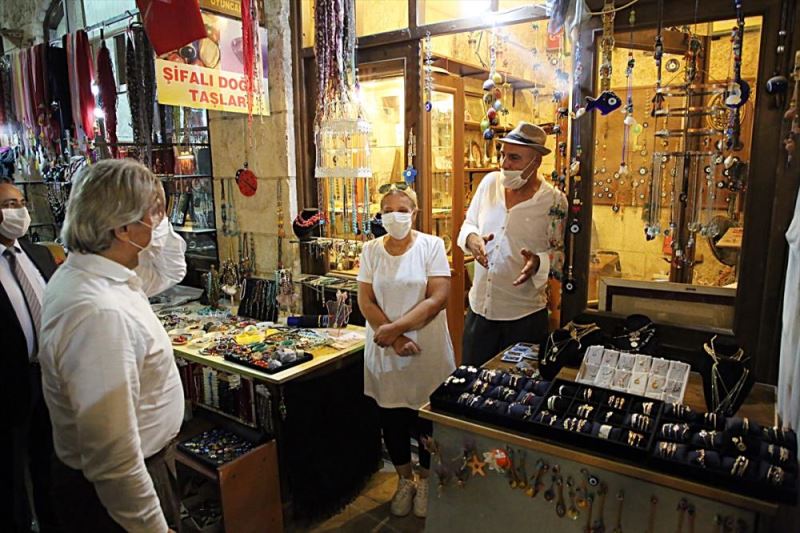 Kirkkasik Bedesteni'ni de ziyaret eden Demircan, buradaki kadin esnafla sohbet etti, kendisine ikram edilen yöresel içecek olan kaynar içti.