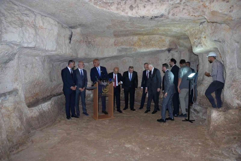 Midyat ilçesinde bir dizi incelemelerde bulunan Kültür ve Turizm Bakanı Mehmet Nuri Ersoy, yeni keşfedilen yer altı mağaralarını ziyaret ederek açıklamada bulundu. Bakan Ersoy, Midyat ve yer altı mağaralarının turizm pastasından hak ettiği değeri alacağını ifade etti. Matiate yer altı şehrinin Midyat için çok önemli bir yer olduğunu değerlendiren Bakan Ersoy, “Sabahtan hem valiliğimizde hem belediyemizde bölgenin ihtiyaçları ile ilgili yeni bir bilgilendirme toplantısı yaptık. Midyat, sahip olduğu tarih dokusuyla çok eski tarihlere varan insan yerleşimine açılmış bir bölge. Dicle-Fırat arasında kalan Mezopotamya’nın kuzeyinde çok önemli bir yerleşim bölgesi olması itibariyle önemli bir noktamız. Turizm açısından da olduğu yerde birçok tarihi şehir var. Midyat hepsinden çok daha eski. İnsan yaşamına indirildiğimiz zaman bilim adamları 50 bin yıl öncesine yaşam izleri bulabilirler” dedi.