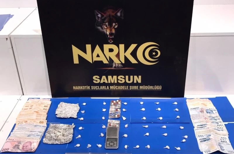 Olay, Samsun’un Atakum ilçesinin Kamalı Mahallesi’nde meydana geldi. Edinilen bilgiye göre, Samsun Emniyet Müdürlüğü Narkotik Suçlarla Mücadele Şube Müdürlüğü ekipleri, Atakum ilçesinde uyuşturucu madde satışı yaptıkları bilgisi bulunan A.K. ile U.Ç.’yi takibe aldı. Söz konusu şahıslar bir kulübe içerisinde yakalanarak gözaltına alındı. Kulübe içinde ve yakalanan şahısların üzerinde yapılan aramalarda 39 paket halinde satışa hazır vaziyette 28,49 gram kokain maddesi, 2 paket halinde satışa hazır vaziyette 0,80 gram metamfetamin maddesi, 10 adet sentetik ecza hap, 1 adet hassas cep terazi ile uyuşturucu madde satışından elde edildiği değerlendirilen 11 bin 780 lira para ele geçirildi.