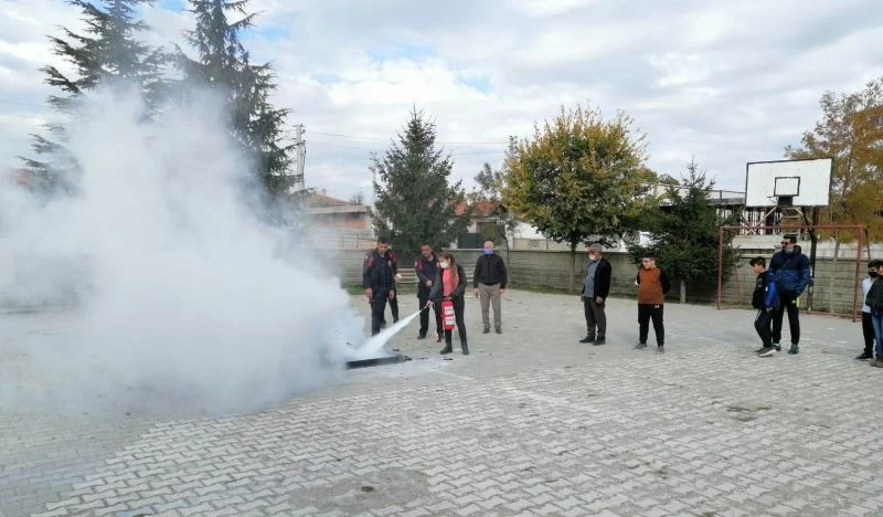 Konya’nın Kulu ilçesinde itfaiye ekipleri tarafından bir ortaokulda yangın eğitimi ve tatbikatı gerçekleştirildi.