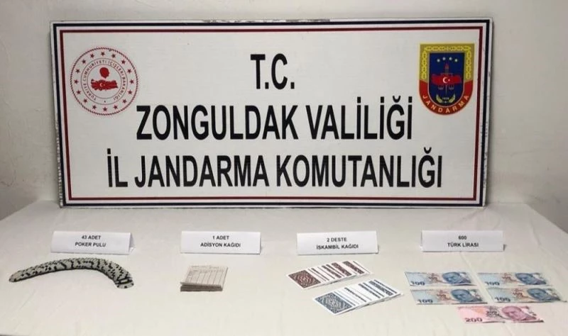 Edinilen bilgiye göre Çaycuma ilçesine bağlı Çayköy’de, S.A.’nın (49) işlettiği kahvehanede kumar oynatıldığı ihbarını alan jandarma ekipleri gece 00.10’da işyerine baskın düzenledi. Yapılan kontrol ve aramada, kahvehanenin açık olduğu; kahvehane sahibi S.A: haricinde S.B. (48), A.T. (48), U.K. (41), B.T. (39), N.E. (44) ve K.A.’nın (22) bulunduğu tespit edildi. Şüphelilerin kahvehane içerisinde ayrı bir bölümde yuvarlak masa etrafında oturdukları, masa üzerinde 2 deste iskambil kağıdı, 1 adet adisyon kağıdı, 1 adet adisyon destesi, 43 adet poker pulu, 1 adet 200 tl ve 3 adet 100 TL’lik banknot olduğu tespit edildi.