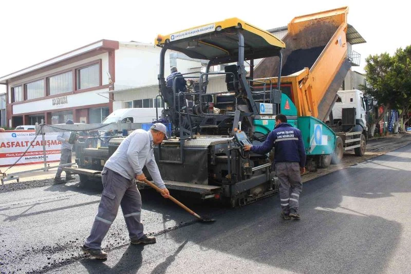 Antalya Büyükşehir Belediyesi, Kumluca Sanayi Sitesinin deforme olan yollarına sıcak asfalt döküyor.