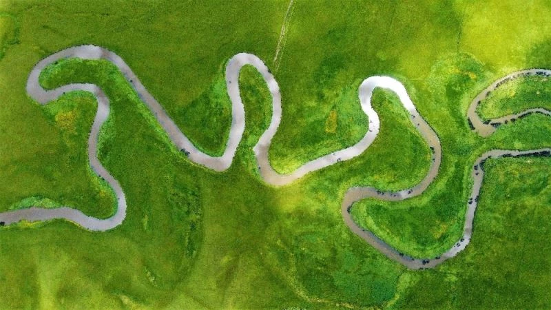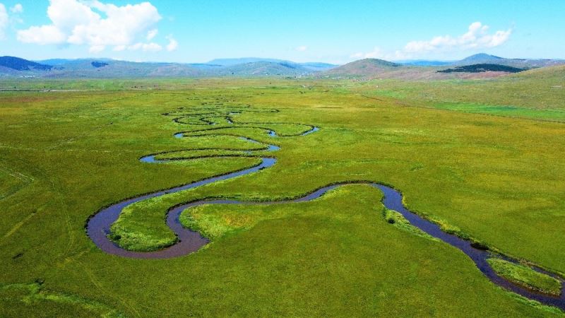 Türkiye, Gürcistan ve Azerbaycan’dan geçerek Hazar Gölü’ne dökülen Kura Nehri’nin oluşturduğu menderesler güzelliğiyle görenleri mest ediyor. Yeşilin çevreleyerek kartpostallık görüntülerin ortaya çıktığı nehir havadan görüntülendi.