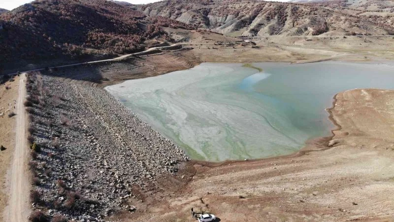 Tokat’ın Sulusaray ilçesinde tarım sulama amaçlı yapılan gölette suların çekilmesi çiftçiyi endişelendiriyor.