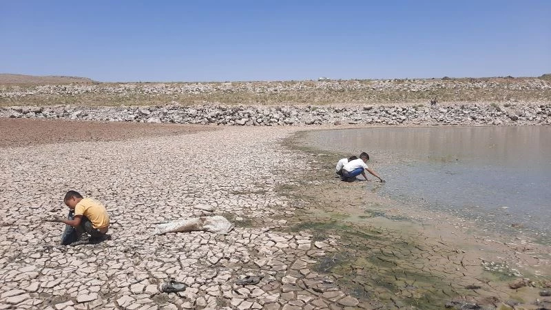 Mardin’in Mazıdağı ilçesinde uzun süre boyunca yağış alamayan ve dip kısmında sızma olan gölettte su seviyesinin düşmesi nedeni ile binlerce balık telef oldu.