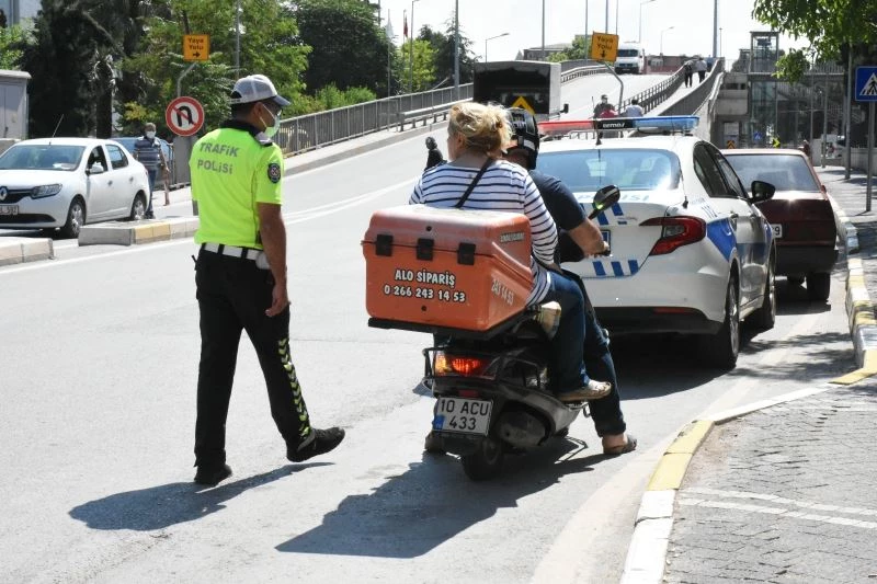 Balıkesir’in Altıeylül ilçesi Çardaklı mevkiinde yapılan motosiklet denetimlerinde polis ekipleri, motosiklet sürücülerine trafik kuralları hakkında uyarılarda bulundular, belgesiz, plakasız ve kurallara uymayan motosiklet sürücülerine de cezai işlem uyguladılar. Trafik Denetleme Şube Müdürlüğü ile asayiş ekiplerinin birlikte gerçekleştirdiği denetimlerde çok sayıda motosiklet kullanıcısına kask ve kural ihlallerinden cezai işlem uygulanırken eksikleri giderilemeyen motosikletler trafikten men edildi. Yaz aylarının gelmesi havaların ısınmasıyla birlikte motosiklet kullanımın artmasına bağlı olarak motosikletli trafik kazalarının çoğalması sonrası trafik güvenliğini sağlamaya yönelik tedbir ve denetimlerin artacağı açıklandı. Polis ekiplerinin bir saatlik denetimi sonrasında 54 adet motosiklet ve elektrikli motosiklet denetlendi. Denetimler sonucunda 4 araç trafikten men edilirken, kask takmayan, ehliyeti bulunmayan ve tescil süresi geçen motor sahiplerine ise toplam bin 264 TL para cezası kesildi.