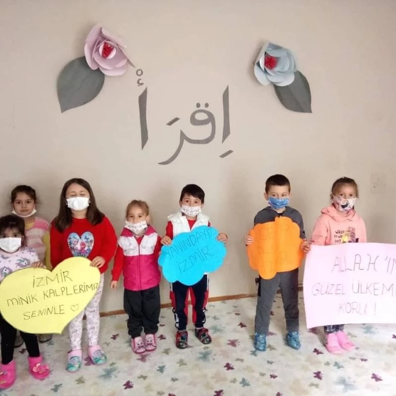 Ertuğrulgazi Kur’an kursu öğrencileri öğretmenlerinin yardımıyla hazırladıkları pankartlarla İzmir’in acısını paylaştılar. “Allah’ım güzel ülkemizi koru, İzmir minik kalplerimiz seninle, Umut oldun Elif, Geçmiş olsun İzmir” gibi yazılı sloganlar ve renkli pankartlarıyla İzmir’in yanında olduklarını gösterdiler. Ayrıca öğrenciler, Kızılay Haftası dolayısıyla öğretmenleri aracılığı ile deprem ile ilgili bilgi sahibi oldular, deprem anında yapılması gerekenleri öğrendiler.
