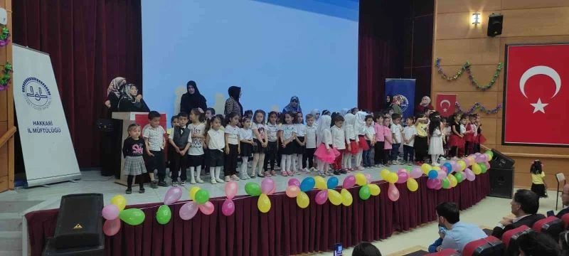 Hakkari İl Müftülüğüne bağlı 4-6 yaş Kur’an kurslarında eğitim gören öğrenciler, yılsonu şenliğinde buluştu. İl Kültür ve Turizm Müdürlüğüne ait Atatürk Konferans Salonunda düzenlenen ve birbirinden renkli görüntülere sahne olan etkinlikler, Kur’an-ı Kerim tilaveti ile başladı. Burada konuşan İl Müftüsü İsmail Fakirullahoğlu, “Çocuklarımız iyiliğe anahtar, kötülüğe kilit olacaktır. Çocuklar istikbalimizdir. Onları bu günden nasıl yetiştirirsek gelecekte onun karşılığını alırız. Onlara, Yüce Allah’ı, Peygamberimiz Muhammed’i, sahabe-i kiramın yaşantısını, helal ve haramı, iyilik ve ihsanı, ahlaklı olmanın önemini öğretip büyütürsek geleceğimizden emin olabiliriz. Allah korkusunu ne kadar öğretirsek, kötülüklerden o kadar uzak tutabiliriz. Onları kötü niyetli kişi ve grupların insafına terk etmemek için bugünden İslam’ı en ince detaylarına kadar öğretmek mecburiyetindeyiz" şeklinde konuştu.