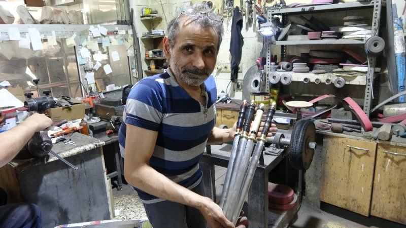 Sivas’ta bıçak ustaları, Kurban bayramına sayılı günler kala yoğun mesai harcıyor. Kurban kesiminde kullanılacak olan bıçakların iyi kesmesini isteyen vatandaşlar, bıçaklarının keskinliğini arttırabilmek için bıçakçılara akın ediyor. Sivas’ta 41 yıllık Bıçak ustası Mustafa Argut, Kurban bayramına özel el yapımı masat üretti. Bıçak gibi çeşitli kesici aletleri bileylemekte kullanılan özel masatlar’ın sap kısmı ve gövde kısmı ise görünümüyle dikkat çekiyor. Özel masatların sap kısmında geyik boynuzu, manda boynuzu, pirinç balçak ve kehribar kullanılıyor. Gövde kısmında yurt dışından getirilen kaliteli çeliğin kullanıldığı masatlar, Kurban bayramı öncesi Bin TL ’den alıcı buluyor. Kendi kurbanını kesen vatandaşlar ve kasaplar için üretilen masatlar ise 250 TL’den satışa sunuluyor.