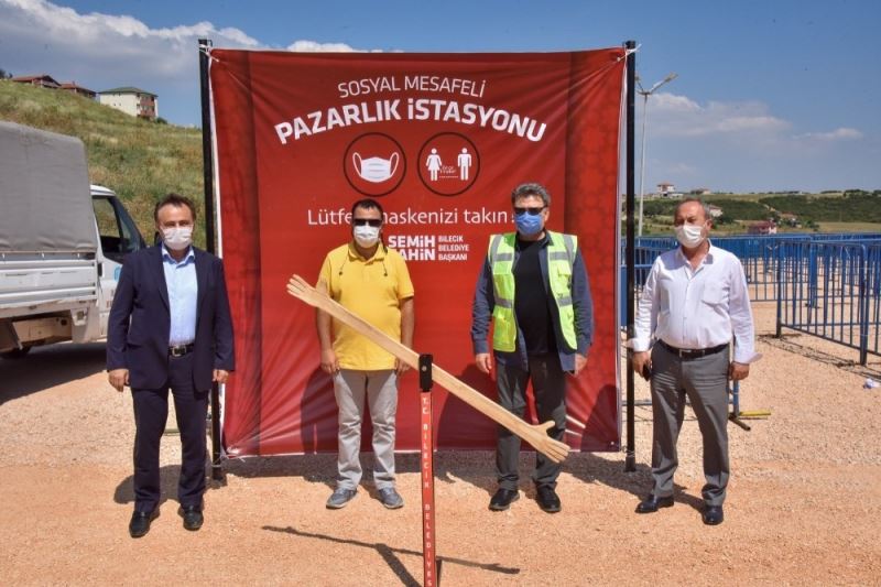 Bilecik Belediyesi tarafından vatandaşların pazarlık yapmaları amacıyla sosyal mesafeli pazarlık istasyonu kurulduğunu belirten Başkan Şahin, ‘’Bilecik Belediyesi olarak salgın için uymamız gereken kuralları hatırlatma ve hemşehrilerimizi gülümsetme amacıyla tokalaşmatik noktası kurduk. Çünkü pazarlık yapılırken tokalaşma geleneğimiz var bizim. Şimdiden bütün esnaf ve vatandaşlarımıza hayırlı alışverişler diliyorum’’ dedi.
