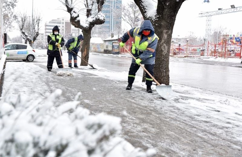 Tepebaşı Belediyesi ekipleri, kentte etkili olan kar yağışı ile birlikte, kar ile mücadele çalışmalarına başladı.