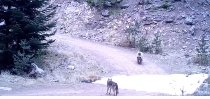 Ankara’da bahar mevsiminin gelmesiyle birlikte doğa yeniden canlandı. Kış uykusundan uyanan bir ayı, kendi alanına giren kurdu kovaladı, o anlar Doğa Koruma ve Milli Parklar Müdürlüğü’nün kameralarınca kayıt altına alındı. Görüntülerde dağlık alanda dolaşan bir ayı kar birikintisinin bulunduğu alanda yiyecek ararken yanına bir kurt yaklaşıyor, onu alanından uzak tutmak isteyen ayı ise kurdu kovalıyor. Kovalamaca devam ederken kurt ve ayının kameranın açısından çıktığı görülüyor.