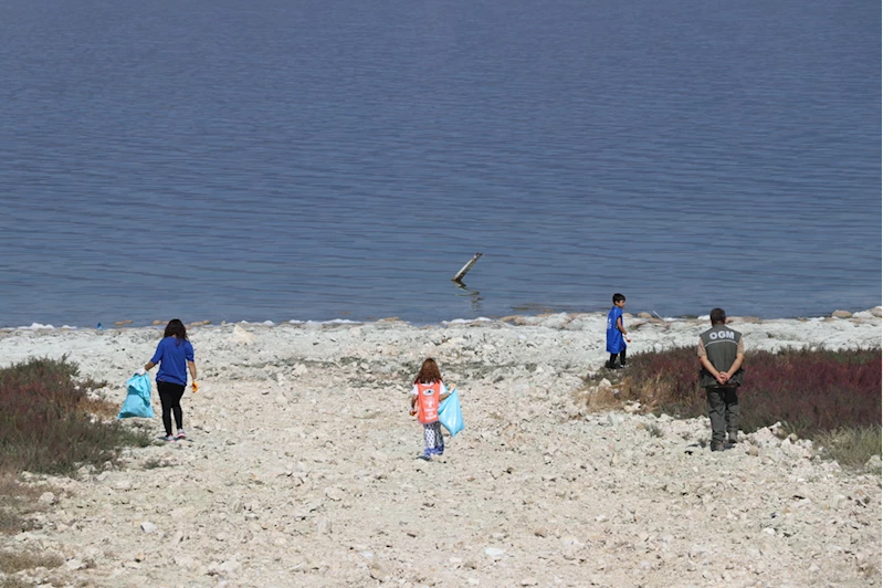 BURDUR - Burdur'da kuruma tehdidi altındaki Burdur Gölü çevresinde çeşitli sivil toplum kuruluşu üyeleri ve gönüllüler, çevre temizliği yaparak yaklaşık 40 torba çöp topladı.