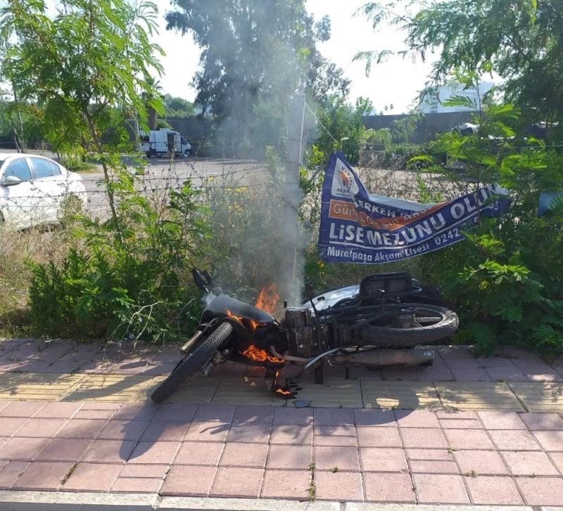 Edinilen bilgiye göre yangın, sabah saatlerinde Konyaaltı ilçesi Arapsuyu Mahallesi 600 Sokak üzerinde çıktı. Bir işletmede kurye olarak çalışan Mustafa Çevik, sabah mesai için 07 FCA 69 plakalı motosikletiyle yola çıktı. İş yerine yaklaşan Çevik’in motosikletinden seyir halindeyken bir anda alevler yükselmeye başladı. Çevik’in hızlı bir şekilde kaldırıma çektiği motosikleti kısa sürede alevlere teslim oldu. Çevredekilerin 112 Acil Çağrı Merkezine ihbarıyla bölgeye itfaiye ve polis ekipleri sevk edildi. İtfaiyenin müdahalesine rağmen motosiklet tamamen yandı ve kullanılamaz hale geldi. Mustafa Çevik, motosikletin yanması nedeniyle büyük üzüntü yaşadı. Yapılan işlemlerin ardından motosiklet otoparka çekildi.