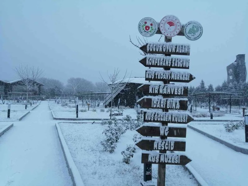 Yalova’nın Altınova ilçesinde 239 kuş türüne ev sahipliği yapan Hersek Lagünü, kar yağışı ile beyaza büründü.