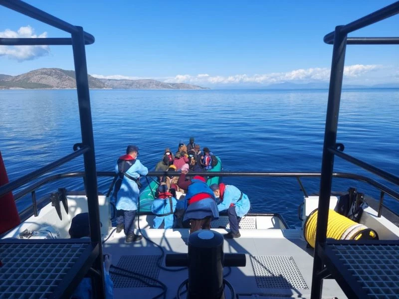 Aydın’ın Kuşadası ilçesi açıklarında yunan unsurları tarafından lastik botlar içinde Türk karasularına geri itilen 38 düzensiz göçmen kurtarıldı.