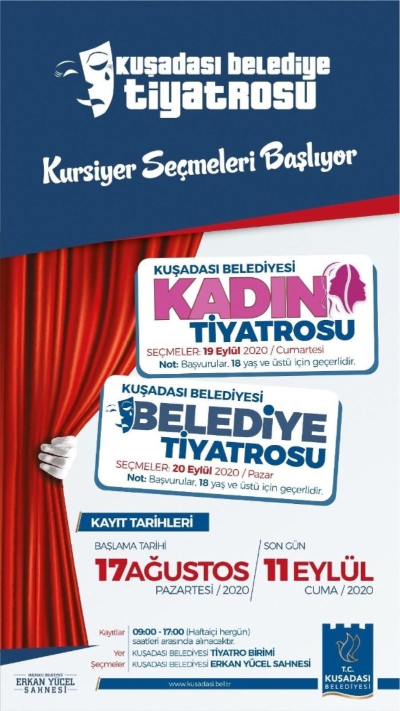 Kuşadalılara tiyatroyu sevdirmeyi ve yetenekli oyuncular yetiştirmeyi amaçlayan Kuşadası Belediye Tiyatrosu; Kadın, Yetişkin, Gençlik ve Çocuk Tiyatrosu olmak üzere dört farklı kategoride tiyatro eğitimi vermek için kursiyer kayıtları almaya başladı. Kuşadası Belediye Tiyatrosu Genel Sanat Yönetmeni Mehmet Turan, tiyatro ve çocuklara yönelik drama eğitimleri için kayıt almaya başladıklarını belirterek, eğitimlere Eylül ayı içerisinde start vereceklerini ifade etti.