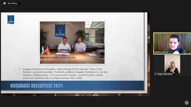 İstanbul Üniversitesi Engelliler Uygulama ve Araştırma Merkezi, 3 Aralık Dünya Engelliler Günü nedeniyle bir sempozyum düzenledi. Kuşadası Belediyesi de sempozyuma online olarak katılarak kentteki engellilere yönelik yürüttükleri projelerle ilgili bir sunum yaptı. Sosyolog Didem Akyüz Saldıran tarafından yapılan sunumda Kuşadası Kent Konseyi Engelliler Meclisi ve engelli dernekleriyle birlikte yürütülen projeler, kentteki engellilerin yaşamlarını kolaylaştırmak için yapılan teknik düzenlemeler ve engelli belediye personeline sunulan haklarla ilgili bilgi verdi. Sunumda ayrıca Avrupa Birliği Sivil Düşün Bizi Bağlayan Şeyler Özel Destek Programı kapsamında “Kuşadası ve Çevresindeki Otizmli Bireylerin Covid-19 Sürecinde Yaşadığı Eğitim Kaybının Ebeveynlere Yönelik Uzaktan Eğitimlerle Giderilmesi” projesinin de ayrıntıları yer aldı.