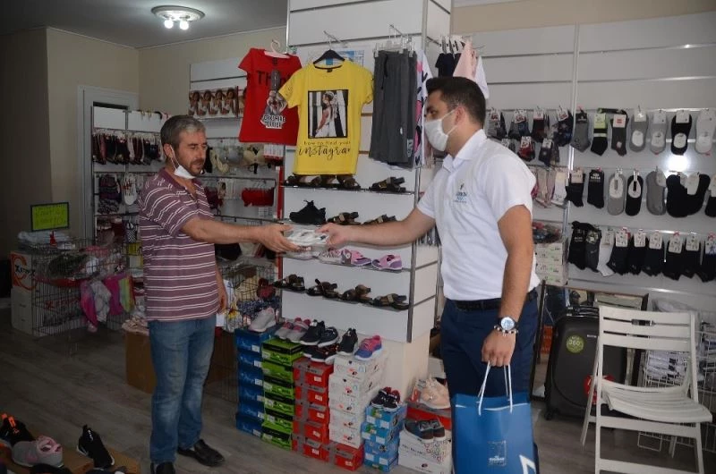 Kuşadası Belediyesi esnafa ücretsiz 20 bin maske dağıttı