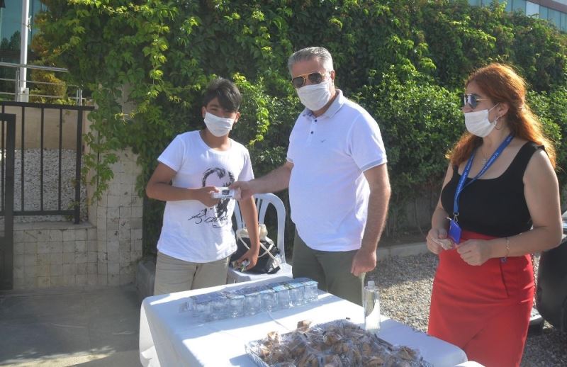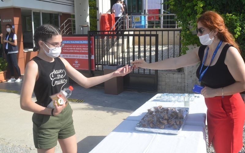 Kuşadası Belediyesi LGS’ye giren öğrencileri, maske, su ve şans kurabiyesi dağıttı