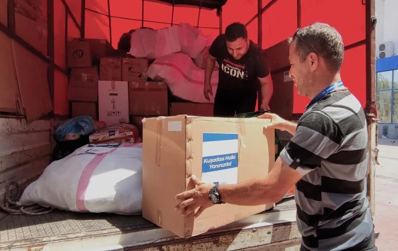 Türkiye’nin farklı noktalarında devam eden orman yangınlarından etkilenen vatandaşların yardımına koşmayı sürdüren Kuşadası Belediyesi öncülüğünde yaralarını sarmaya çalışan Manavgat ve Marmaris için bir yardım kampanyası başlatıldı. 5 gün boyunca Kuşadası Belediyesi Ana Hizmet Binası, Davutlar Hizmet Binası ve Güzelçamlı Hizmet Binası önünde kurulan yardım çadırlarına Kuşadalılardan bağış yağdı. Malzemeler, Sosyal Yardım İşleri Müdürlüğü’nde çalışan personel tarafından paketlendikten sonra kamyona yüklendi. Yangın felaketinden etkilenen vatandaşlar için toplanan malzemeleri taşıyan ilk kamyon Kuşadası Belediye Başkan Yardımcı Seyfi Seyhan Suvari, belediye çalışanları ve vatandaşlar tarafından Marmaris’e uğurlandı. Yardım kamyonunun içerisinde gıda kolisi, temizlik malzemesi, hayvan maması, dezenfektan, maske, baret, el feneri ve battaniye gibi malzemeler bulunuyor. Kuşadası Belediyesi tarafından yangınla mücadele eden işçilerin acil ihtiyaçlarını karşılamak amacıyla başlatılan yardım kampanyası ise sürüyor.