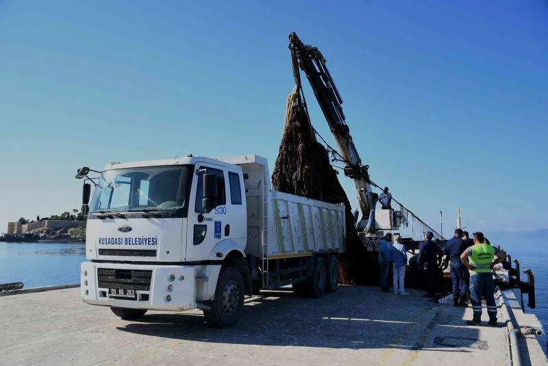 Kuşadası Körfezi’nden yaklaşık 40 metre uzunluğunda ve 5 ton ağırlığında “hayalet ağ” çıkartıldı. Uzun yıllar boyunca balıkçı tekneleri tarafından denize bırakılan ağları geri dönüştürmek üzere Kuşadası Belediyesi teslim aldı.