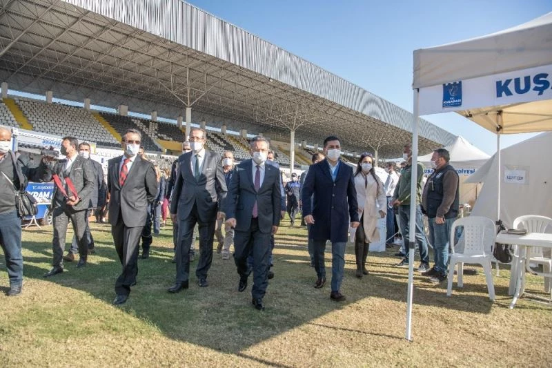 Kuşadası Belediye Başkanı Ömer Günel ise “Kuşadası Özer Türk Stadı’na AFAD tarafından kurulan çadırlarda kalan vatandaşlarımızın eksiklerini tespit edip, gidermek için var gücümüzle çalışıyoruz. Burada UMKE, İlçe Emniyet Müdürlüğü, Kızılay, Milli Eğitim Bakanlığı, AFAD ve Kuşadası Belediyesi iş birliği içerisinde hareket ediyor. Türkiye olarak zor günlerden geçtiğimiz bugünlerde böylesine bir tablo görmek gerçekten umut verici” diye konuştu.