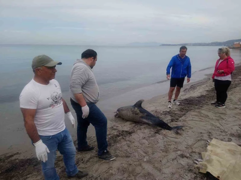 Aydın’ın Kuşadası ilçesinde 2 metre boyundaki bir yunus sahilde ölü olarak bulundu.