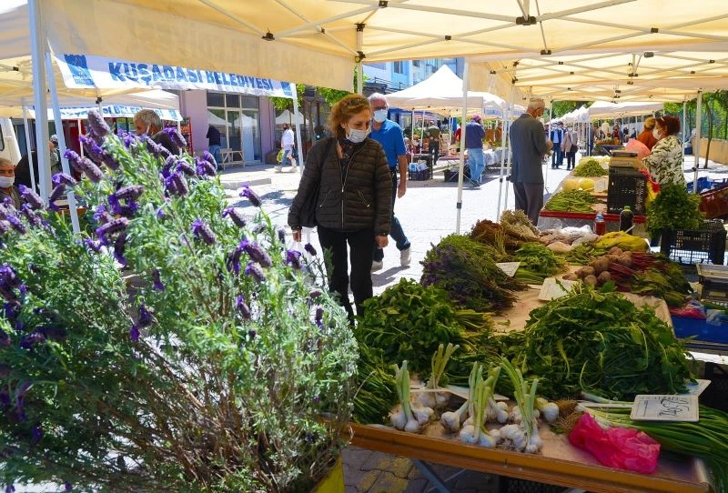 Kuşadası’nda her Perşembe günü Cumhuriyet Mahallesi Burç Sokak’ta kurulan yerel üretici pazarı uygun fiyata doğal ve sağlıklı beslenmek isteyenlerin vazgeçilmez uğrak noktası olmayı sürdürüyor. Kirazlı, Caferli, Çınar ve Soğucak mahallelerinde yaşayan yerel üreticilerin iyi tarım uygulamaları ile ürettikleri mevsimlik ürünlerini satışa sunduğu Yöresel ve İyi Tarım Ürünleri Sokağı’nda kadınlar tarafından yapılan yerel tatlar da bulunuyor. İçli köfteden yaprak sarmasına, otlu börekten keşkek ve aşureye kadar birbirinden lezzetli yiyeceklerin büyük rağbet gördüğü pazarda, doğal yollarla üretilen yumurta, bal ve süt gibi hayvansal ürünler de yer alıyor.