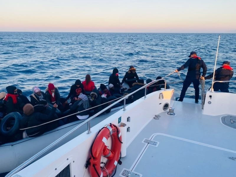 Aydın’ın Kuşadası ilçesi açıklarında Yunan unsurları tarafından geri itilen lastik bot içerisindeki 32 düzensiz göçmen kurtarıldı.